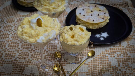 Gospodina își amintește despre această rețetă din anii copilăriei, când bunica sa gătea cremeș. Practic, crema pentru acest desert este chiar această budincă – ”o întoarcere în timp, către gusturile simple și autentice de acasă”.
