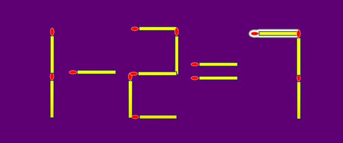 Mută un singur băț de chibrit pentru a corecta 1-2=7