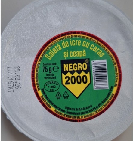 Conform ANSVSA, SC Negro 2000 SRL recheamă produsul salată de icre cu caras şi ceapă 75 g, lot 167KT, cu data expirării 25.02.2026. Decizia vine din cauza detectării bacteriei Listeria monocytogenes. Românii care au achiziţionat acest produs sunt rugați să nu îl consume, ci să îl returneze la Serviciul Clienţi din magazinul Kaufland de unde l-au cumpărat. Contravaloarea produsului va fi restituită integral, fără să fie necesară prezentarea bonului fiscal.