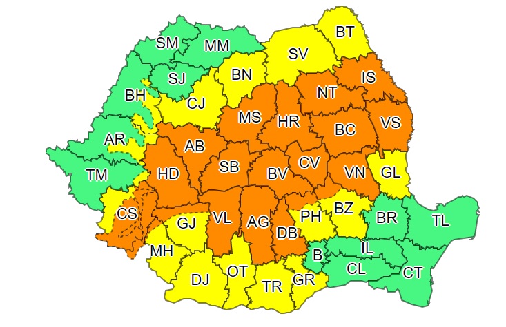 Alertă meteo cod galben și portocaliu de ploi și furtuni în aproape toată țara au fost emise de Administraţia Naţională de Meteorologie.