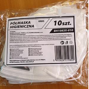 Descrierea ambalajului: Pungă de plastic conținând 10 bucăți.Pe etichetă se indică faptul că produsul este o mască de igienă KN95, iar în instrucțiunile de utilizare este promovat ca echipament individual de protecție.