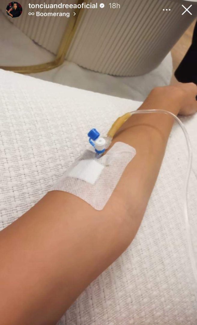 Andreea Tonciu s-a confruntat cu probleme similare și luna trecută, când a primit același tip de tratament. Atunci, vedeta declara pentru SpyNews că avusese nevoie de un „cocktail de vitamine”, după ce starea de sănătate nu era una bună.