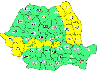 Temperaturile maxime se vor încadra între -6 grade în nordul Moldovei și 15 grade în Dealurile de Vest; minimele termice vor fi cuprinse între -7 grade în extremitatea de nord a Moldovei și 10…11 grade în sudul Banatului.