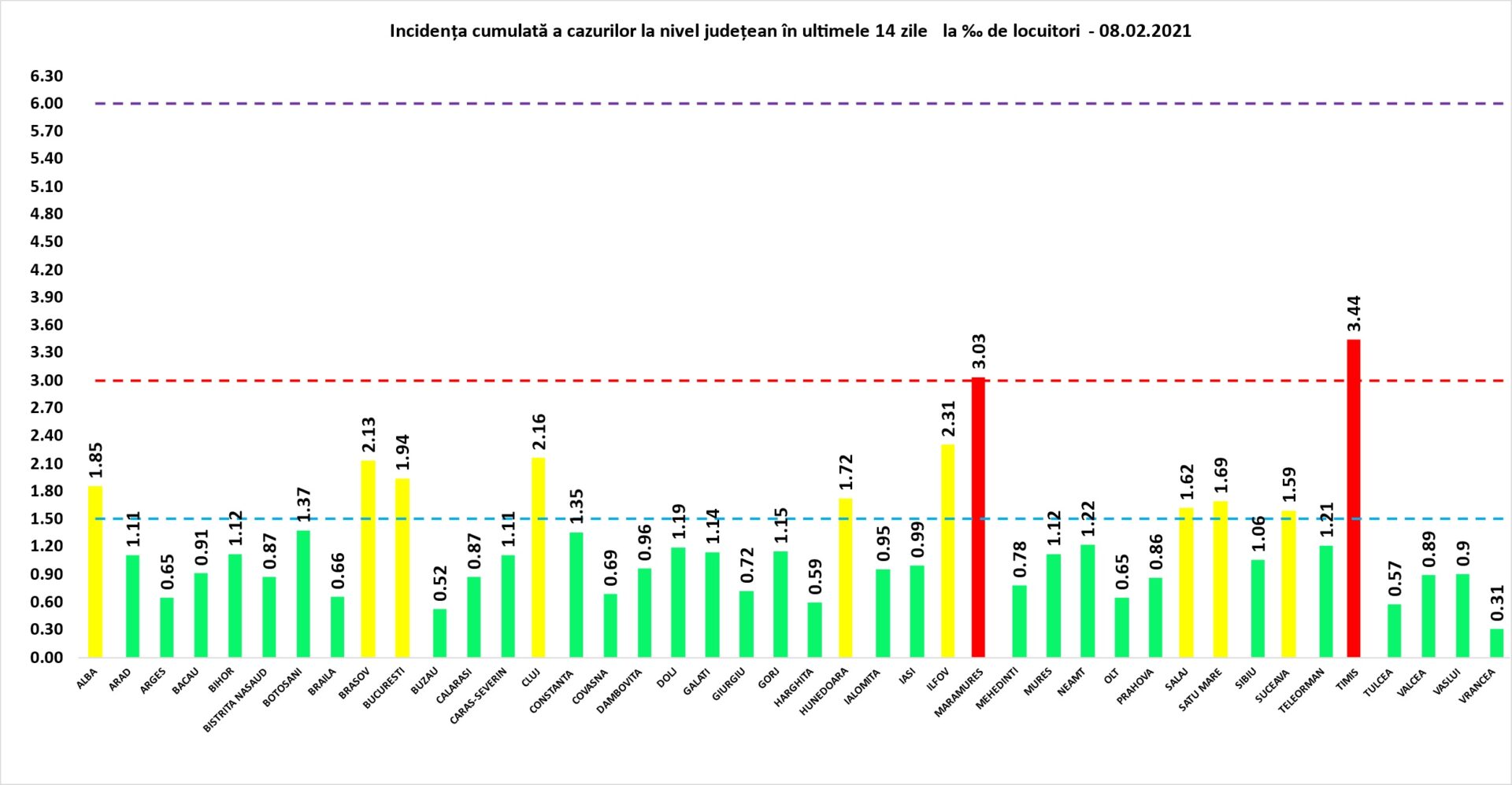 Coeficientul infectărilor cumulate la 14 zile, raportate la 1.000 de locuitori este calculat de către Direcțiile de Sănătate Publică, la nivelul Municipiului București și al județelor.