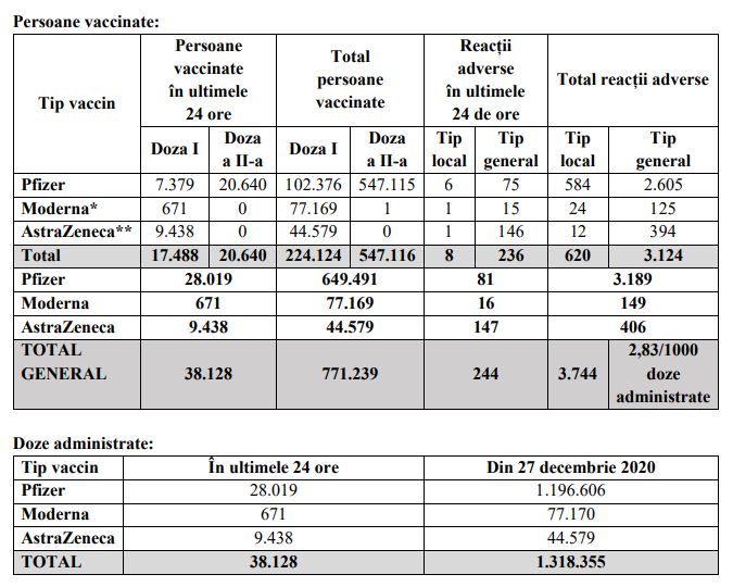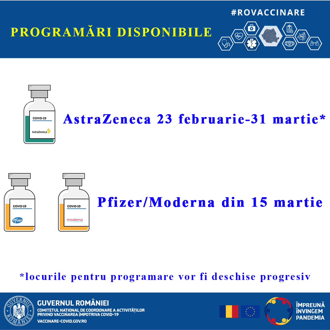 *Vaccinul Moderna se administrează din data de 4 februarie 2021;
