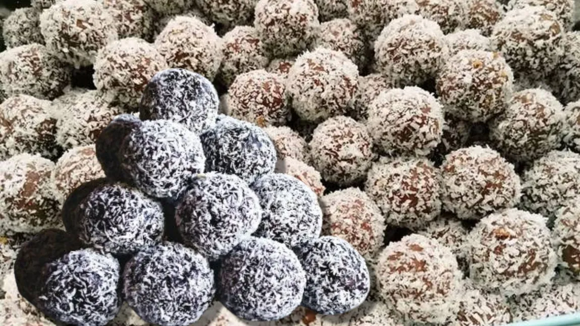 Turnam compozitia fierbinte peste biscuiti, amestecam si formam bilute dupa care le dam prin fulgii de nuca de cocos.
