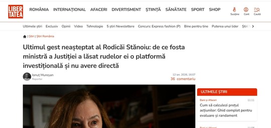 Într-un articol promovat pe reţelele de socializare, care aparent este publicat de ziarul Libertatea, folosind logo-ul publicaţiei, dar în realitate nu are nicio legătură cu site-ul ziarului, o aşa-numită „platformă de investiţii” acreditează ideea că octogenara Rodica Stănoiu a făcut 6 milioane de lei din averea sa investind pe respectiva platformă.