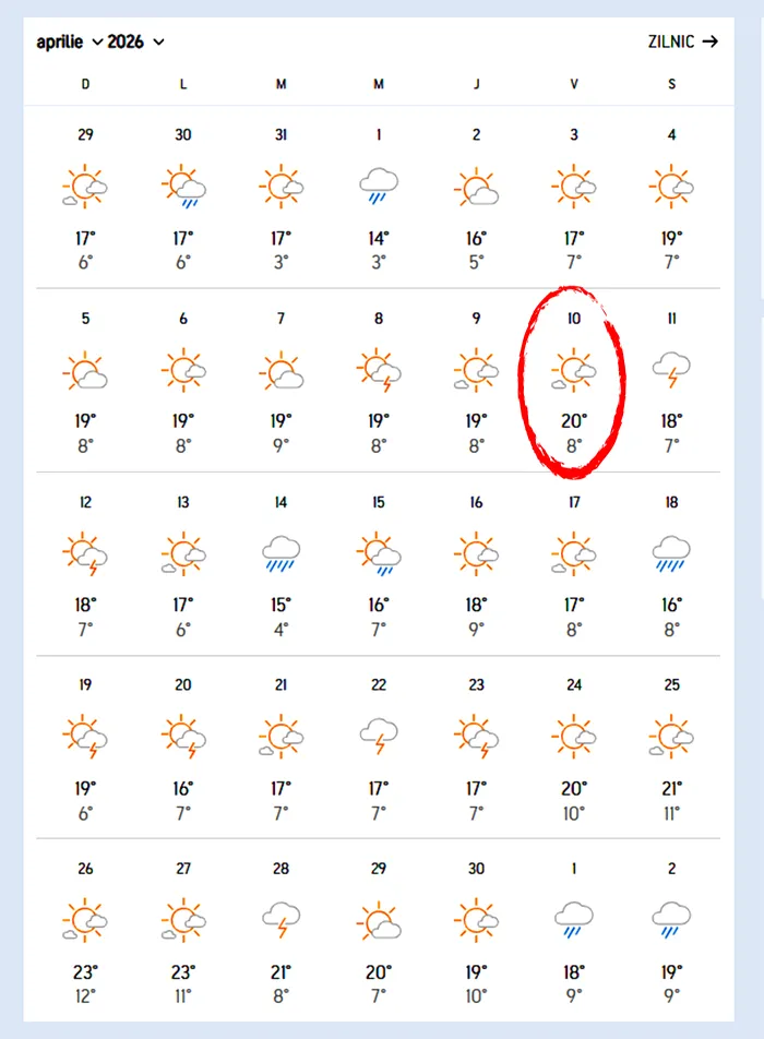 Potrivit meteorologilor Accuweather, prima zi cu temperaturi de peste 20 de grade Celsius, când vom putea considera că a venit primăvara, este 10 aprilie, în București, chiar în Vinerea Mare.