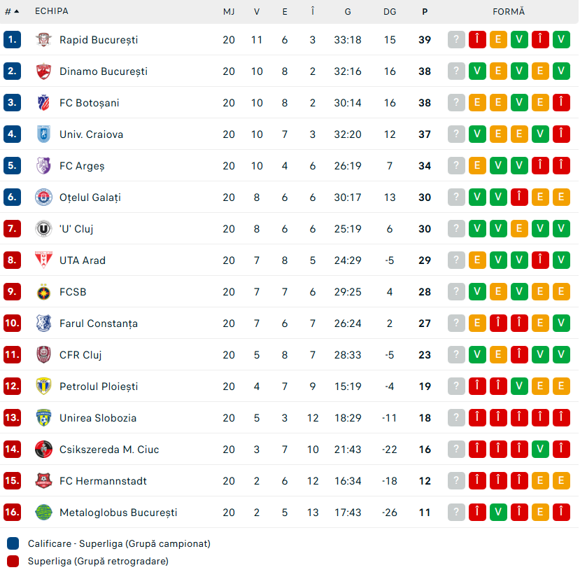 Bookmakerii au publicat cotele privind favoritele la titlu din SuperLiga, după primele 20 de etape, iar Rapid, aflată pe primul loc cu 39 de puncte, rămâne favorită, deși a pierdut cu 0-2 în ultima etapă împotriva Oțelul Galați.