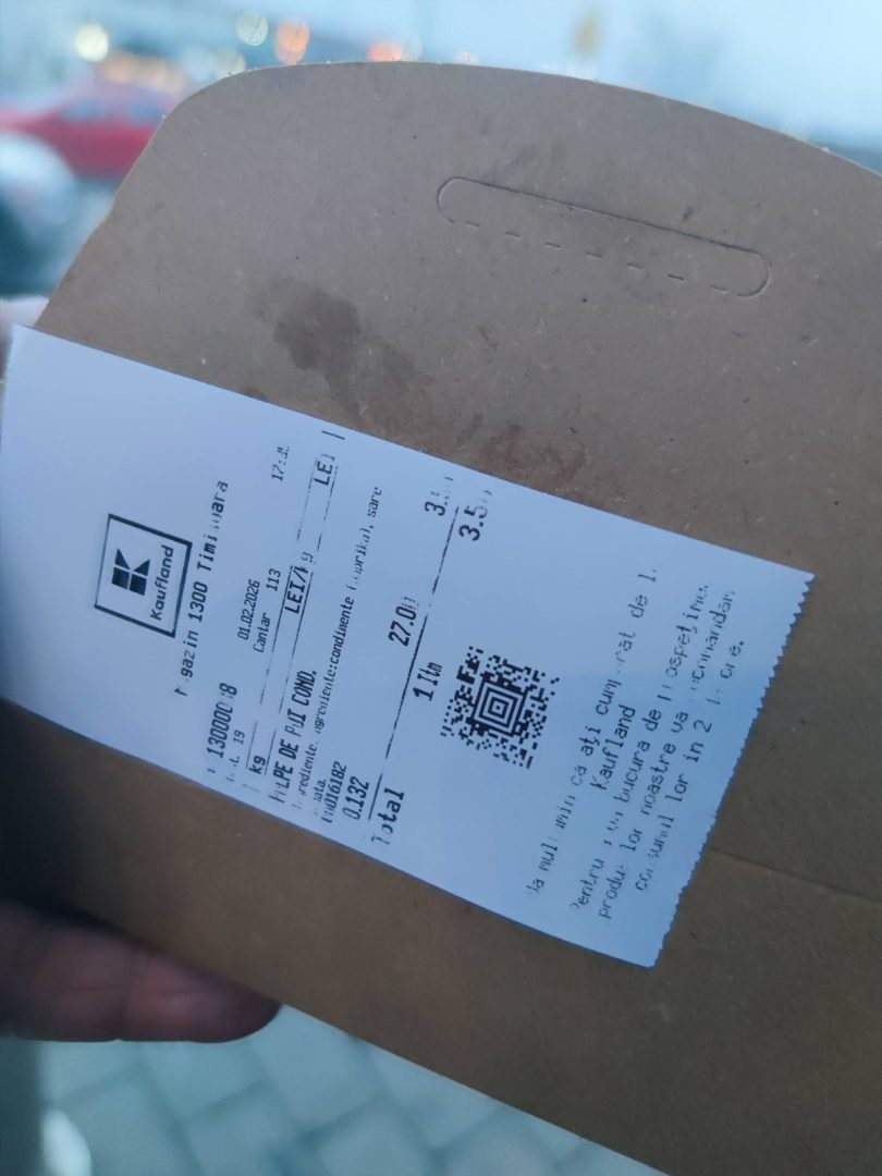 Postarea unui român cu bonul de la grilul Kaufland a devenit virală pe rețelele de socializare. Clientul retailerului a povestit că l-a luat foamea în timp ce era la cumpărături, astfel că s-a oprit și și-a luat o pulpă de pui făcută la cuptor și o chiflă. A rămas, însă, mut de uimire atunci când a constatat că masa la costat doar patru lei, potrivit cancan.