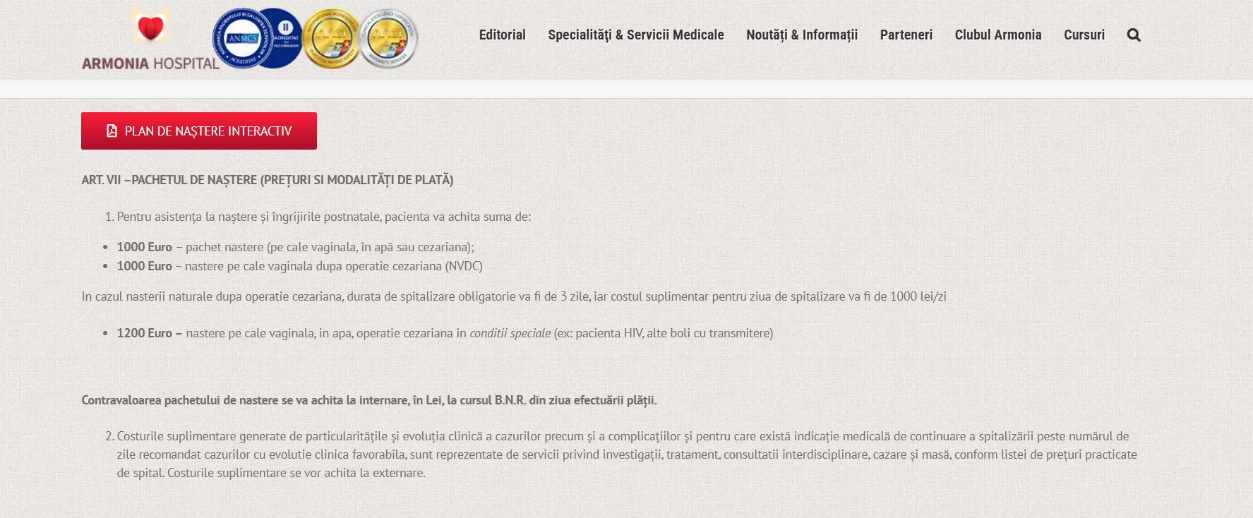Lista completă cu tarifele la Clinica Armonia Hospital