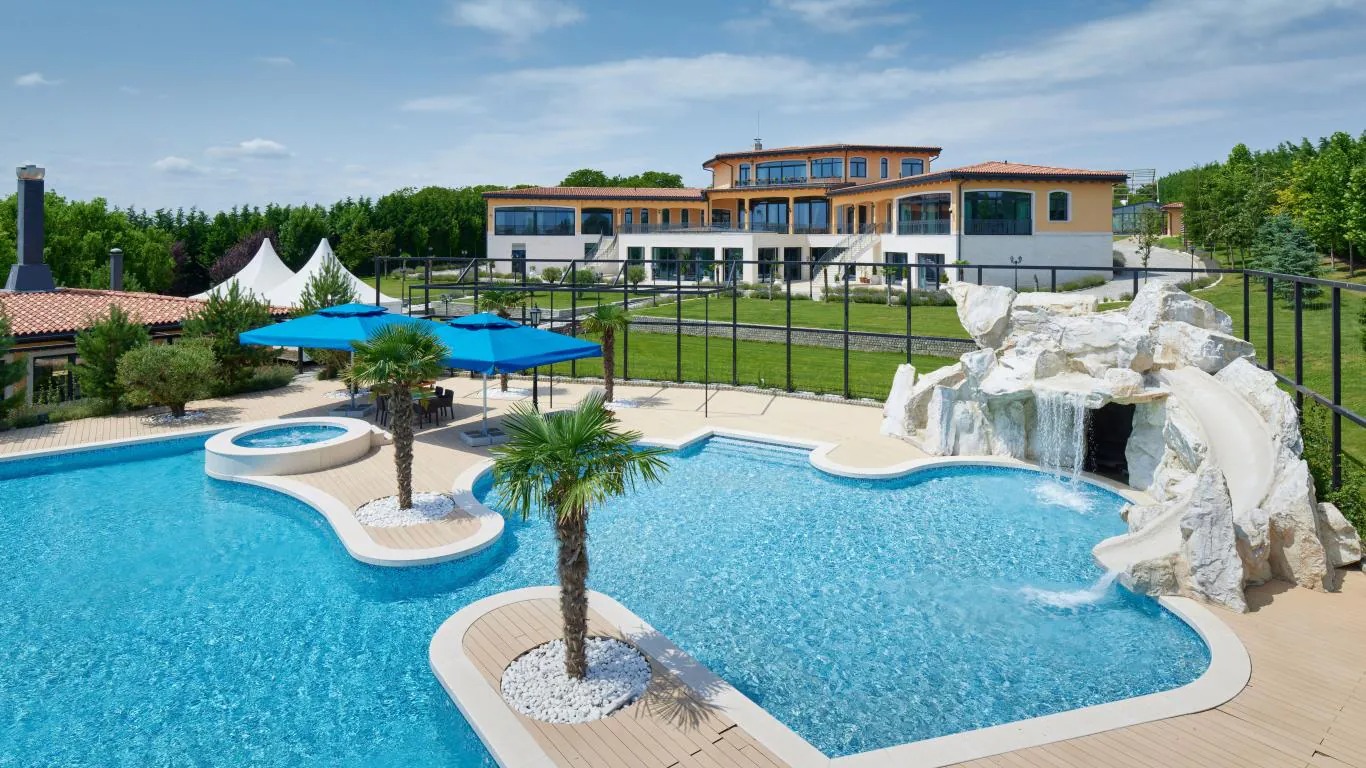 În ceea ce privește facilitățile, vila dispune de o zonă extinsă de wellness, care include piscină interioară, sală de masaj, saună și o cramă de vinuri. De asemenea, oaspeții au acces la bar, cameră de jocuri și sală de gimnastică. Exteriorul proprietății este la fel de impresionant, cu o piscină exterioară, terasă în aer liber, grădini amenajate și terenuri de tenis, oferind multiple opțiuni pentru relaxare sau activități sportive.