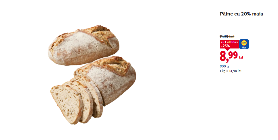 Ca în orice magazin, prețurile pot varia și pot fi mai mici la promoții sau mai mari în afara perioadelor de ofertă oficială. Pe baza acestei liste, un preț mediu orientativ pentru o pâine simplă la Lidl România, luând în calcul atât promoțiile, cât și prețul produselor standard, ar fi în jur de 4 – 6 lei.