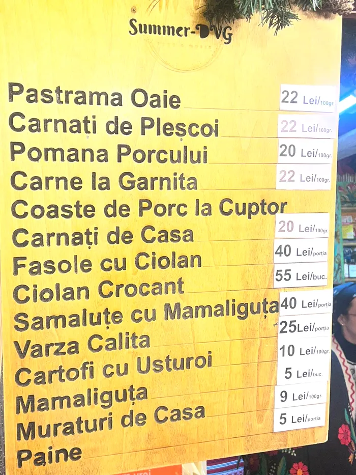 Un „ciolan crocant”, de exemplu, costă 55 lei/bucată. Dacă vrei să bei un pahar de vin fiert nu îl poți cumpăra fără minim 15 lei, iar dacă dorești tărie mai scoți din buzunar alți 20 de lei.