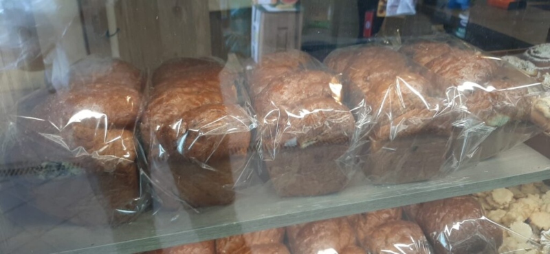 Printre produsele populare pe care le are spre vânzarea cofetăria se numără și pasca cu brânză dulcea și stafide, la prețul de 5 lei.