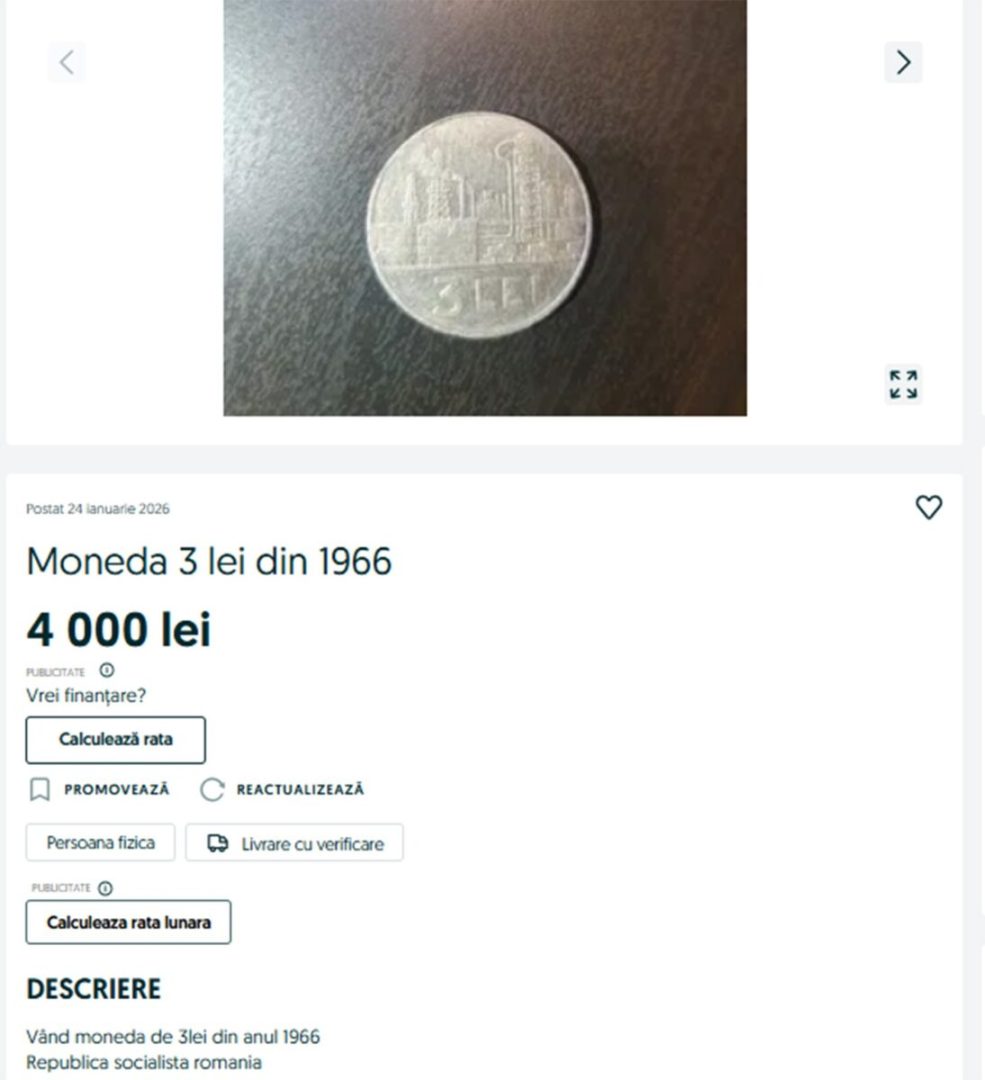 Prețul pentru o astfel de monedă este influențat de starea de conservare, raritatea variantei și de cererea de pe piașa numismatică. Un astfel de exemplar se cinde cu 4.000 de lei în prezent. Dacă o ai pe acasă, ai putea să o valorifici fără să depui prea mult efort.