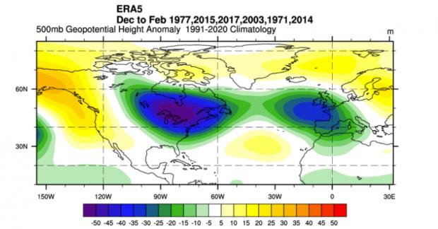 Rezultatul arată că în acești ani, presiunea atmosferică a fost ridicată deasupra regiunilor polare, semn clar al unui vortex slăbit, iar circulația aerului s-a modificat substanțial. Zone extinse de joasă presiune s-au format din estul Statelor Unite până în Atlanticul de Nord, permițând pătrunderea aerului arctic în zonele temperate.