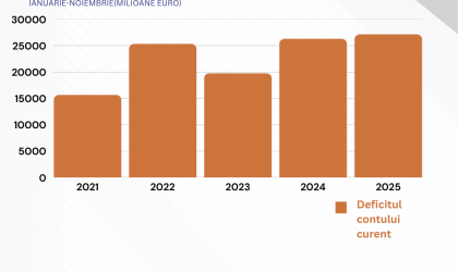 Concret, deficitul contului curent al balanței de plăți a României s-a ridicat la 27,1 4 miliarde de euro, în primele 11 luni ale anului trecut, cu puțin peste un miliard de euro mai mult decât în perioada similară din 2024, conform datelor BNR. Altfel spus, din România au ieșit cu 27 de miliarde de euro mai mult decât au intrat. Cel mai mare deficit a venit, ca de obicei, din comerțul cu bunuri, de la mâncare, electrocasnice și haine la utilaje, acolo unde am importat cu peste 18,4 miliarde de euro mai mult decât am exportat. Plusul substanțial, de peste 10 miliarde de euro, vine din servicii, mai precis din transporturi, loan (textile mai ales) și servicii IT&C, notează economica.net.