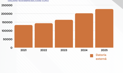 • Datoria externă totală a României a crescut cu peste 24 de miliarde de euro, până la 227,5 miliarde de euro, în perioada ianuarie-noiembrie 2025