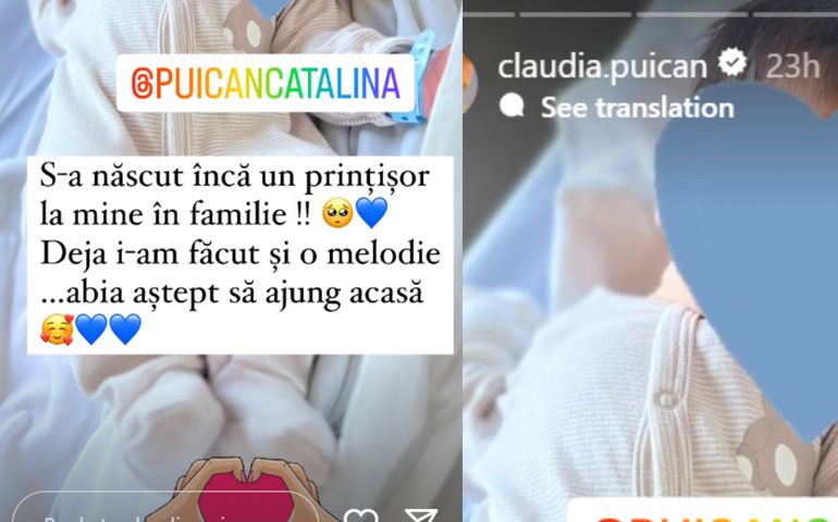 „S-a născut încă un prințișor la mine în familie! Deja i-am făcut și o melodie… abia aștept să ajung acasă”, a fost mesajul transmis de Claudia Puican, pe Instagram.