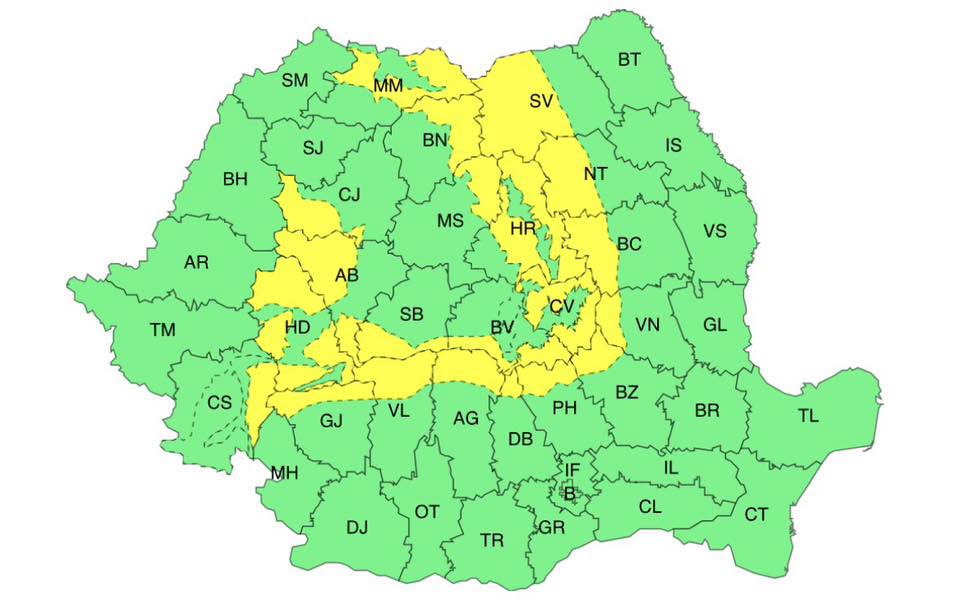 Totodată, a fost emisă ATENȚIONARE METEO COD GALBEN pentru intervalul 20 aprilie, ora 21 – 22 aprilie, ora 21, de ninsori însemnate cantitativ și strat de zăpadă la munte, la altitudini în general de peste 1400 m.