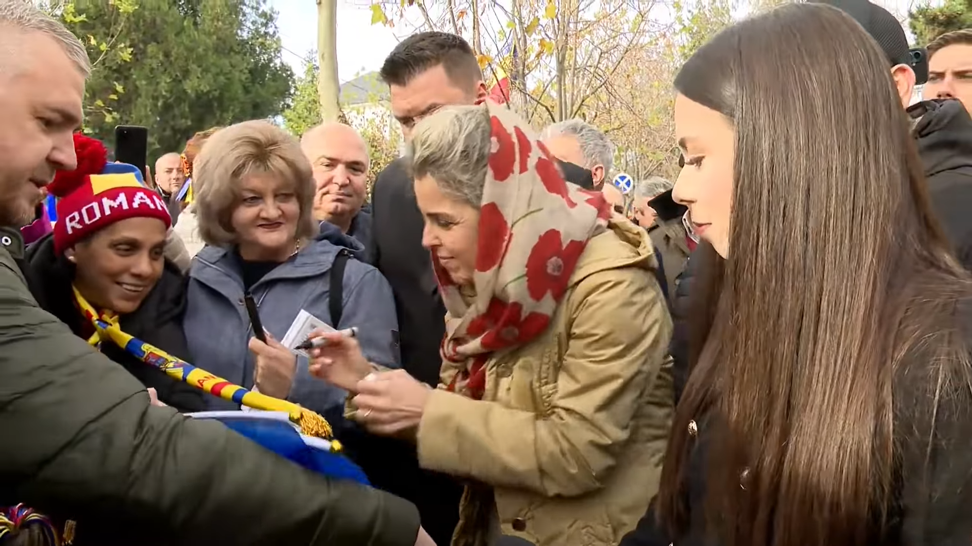 Cristela Georgescu le-a mulțumit românilor care îl susțin pe soțul ei și marți, 25 noiembrie 2025, a mers la biserica din apropiere de secția unde Călin Georgescu semnează pentru controlul judiciar. Aceasta a împărțit dulciuri copiilor veniți cu părinții în fața secției de poliție din Buftea și a dat autografe.