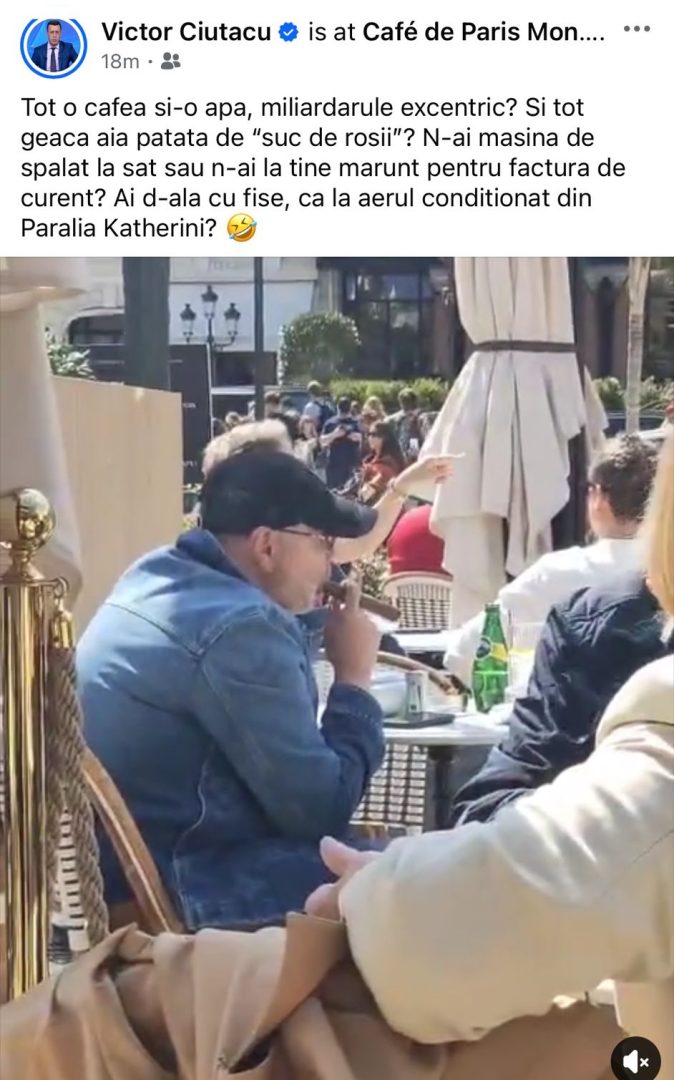 „Tot o cafea si-o apa, miliardarule excentric? Si tot geaca aia patata de “suc de rosii”? N-ai masina de spalat la sat sau n-ai la tine marunt pentru factura de curent? Ai d-ala cu fise, ca la aerul conditionat din Paralia Katherini?”, a transmis jurnalistul România TV.