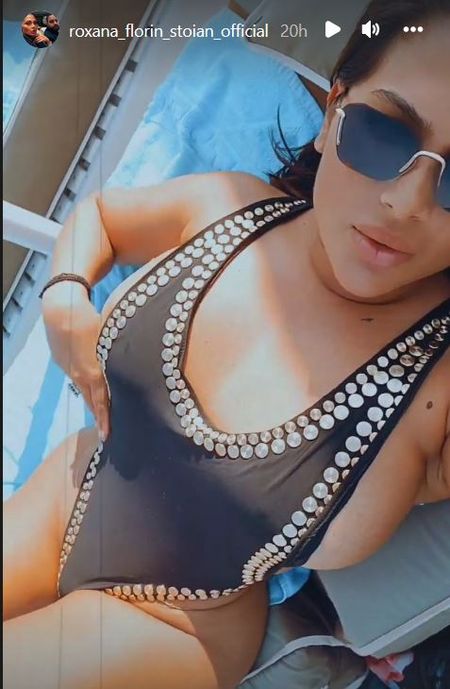 Îmbrăcată într-un costum de baie care îi dezvăluia formele voluptoase ale corpului, actuala soţie a lui Florin Salam a atras toate privirile. Bruneta a făcut şi câteva capturi în care se putea vedea că are un costum de baie întreg, ce îi descoperea o parte din bust. De asemenea, ţintele de pe costum străluceau alături de bijuteriile scumpe, etalate pe mâini.