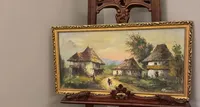 ”Este o casă boierească. Fiecare tablou are o poveste sentimentală. De exemplu, acesta de deasupra șemineului l-am păstrat cu rama cu care a fost cumpărat și așa cum l-am primit. Tatăl meu mi l-a făcut cadou de Crăciun. Și-a strâns, săracul, bani din pensie… cred că a dat în jur de 2000 de lei pe el; e un pictor interbelic.