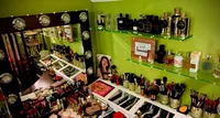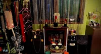 În dressing sunt expuse colecții de pantofi, parfumuri și produse de machiaj.