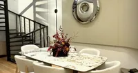 Zona de zi este gândită în stil open space. Livingul se continuă cu bucătăria, iar la intrare se află o masă mare, de șase persoane.