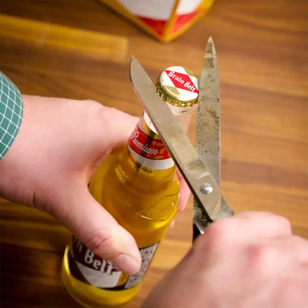 În cutia cu scule vei găsi nenumărate obiecte pentru a deschide orice sticlă îmbuteliată. Așază capătul unei șurubelnițe cu cap plat sub capac, apoi utilizează pârghia pentru a slăbi capacul până se va desprinde. Acest lucru poate fi făcut și cu ajutorul unui clește de tip papagal, strângând ușor sub capac și apoi să ridici până când acesta va ieși.