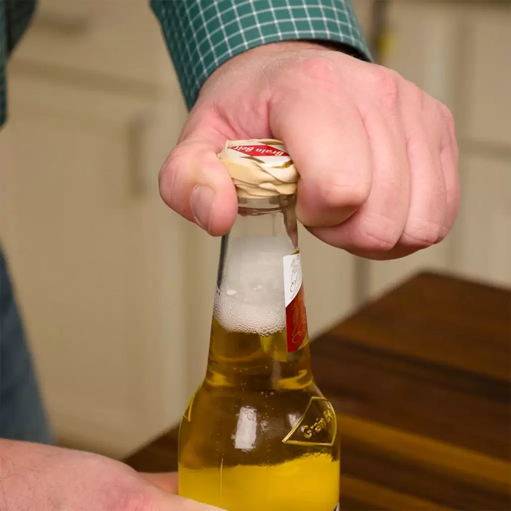 Marginea unei mese sau tocul ușii te pot ajuta să scapi de dopul metalic. Fixează sticla de bere, apoi lovește capacul. Nu în ultimul rând, poți scoate capacul și cu ajutorul verighetei. Nu îți face, totuși, un obicei din asta, petru că verigheta se poate zgâria ușor.