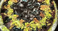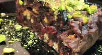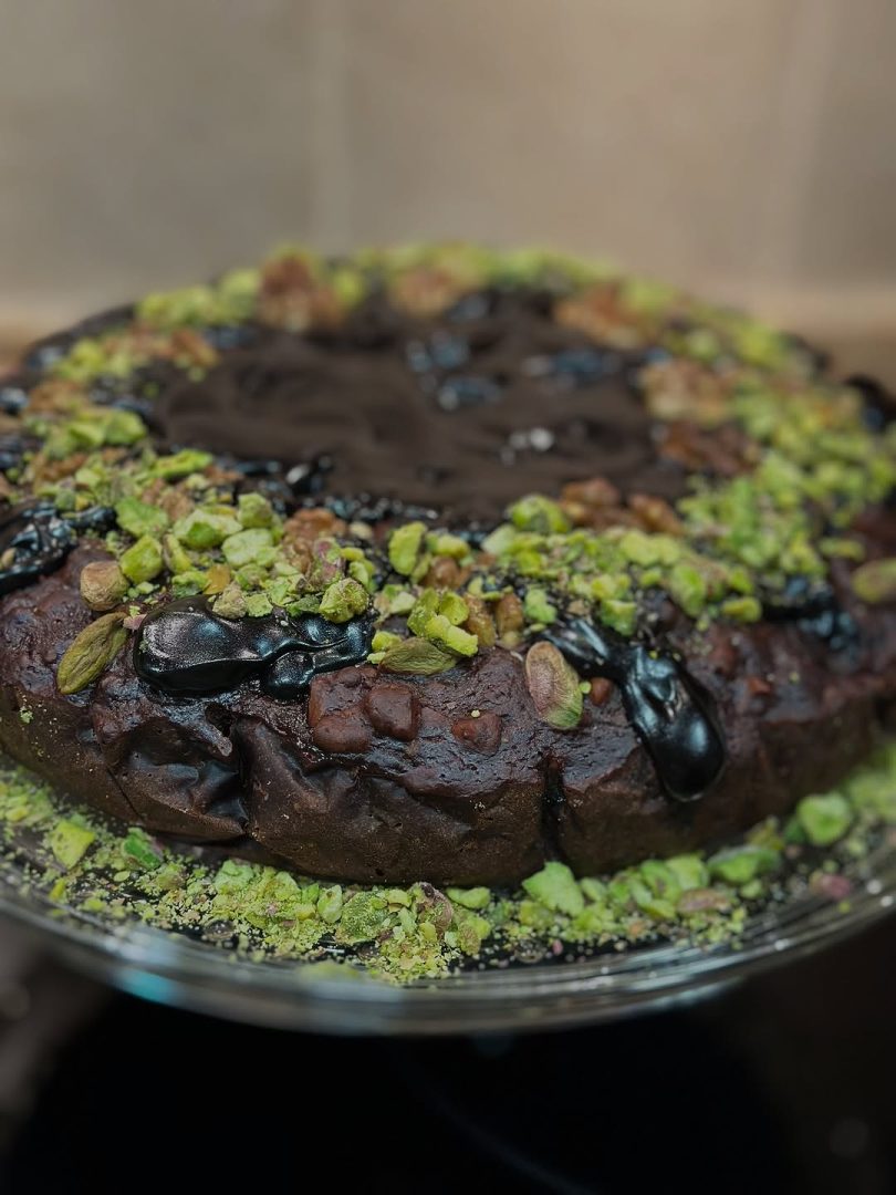 Rezultatul este o negresă de post bogată, umedă și aromată, perfectă pentru orice moment dulce. Pentru un plus de gust și culoare, artista a presărat negresa cu bucățele de fistic și alte nuci.