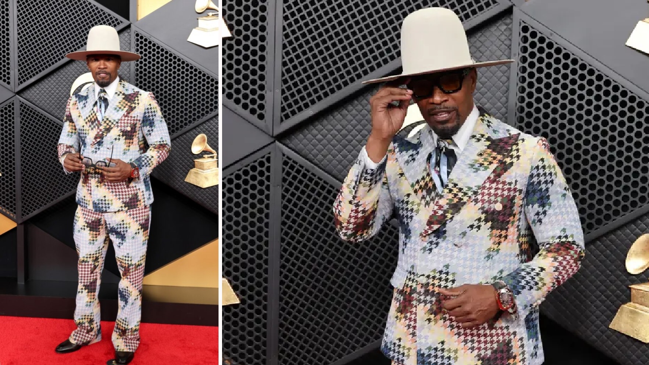 Jamie Foxx a ales un costum în carouri, în nuanțe de maro, albastru, portocaliu și galben, completat de o cravată asortată și o pălărie, alegerea fiind consideerată neinspirată: „costumul și accesoriul statement păreau să se lupte pentru atenție”.