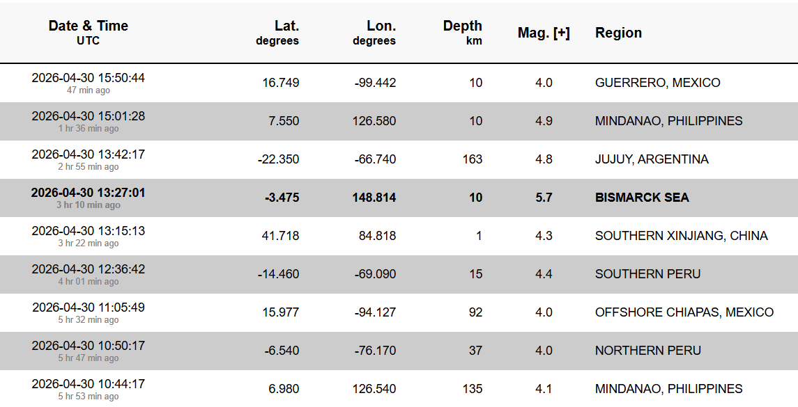 Lista cutremurelor din ultimele ore, cu magnitudini de peste 4: