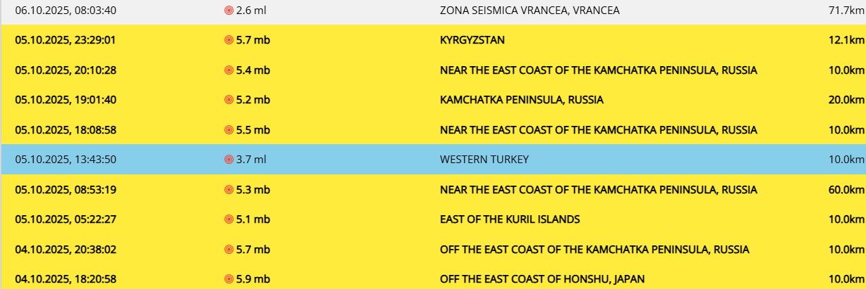 „În ziua de 05 Octombrie 2025, la ora 08:53:19 (ora locală a României), s-a produs în NEAR THE EAST COAST OF THE KAMCHATKA PENINSULA, RUSSIA un cutremur semnificativ cu magnitudinea mb 5.3, la adâncimea de 60.0 km.”, scrie INCDFP.