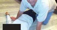 O altă fotografie îl surprinde pe Mountbatten-Windsor cu mâna așezată pe abdomenul aceleași persoane. În fundal, o altă persoană neidentificată își sprijină picioarele pe o masă, pe care se află un teanc de prosoape.