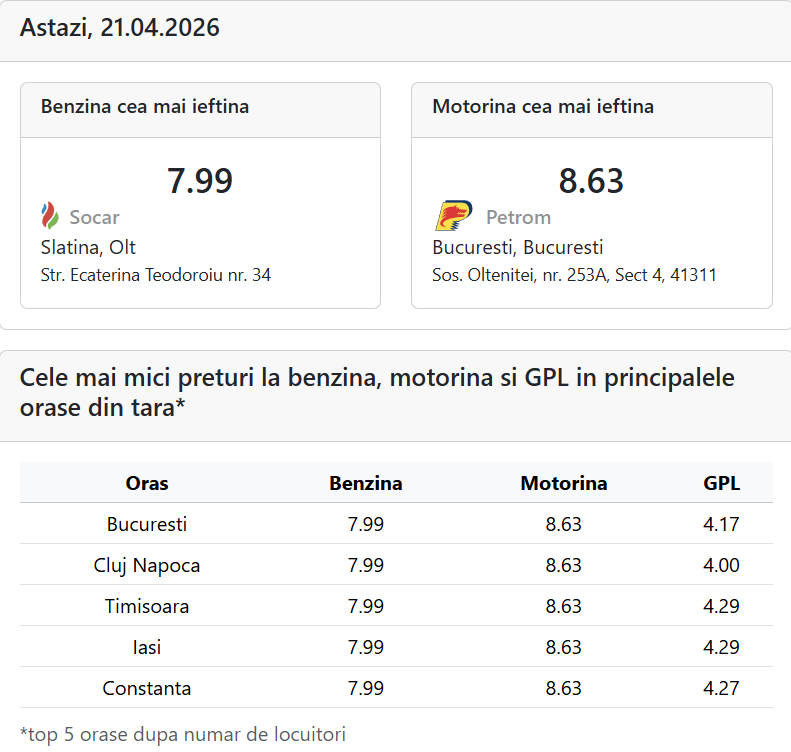 Preţ carburanţi 21 aprilie 2026 online AICI