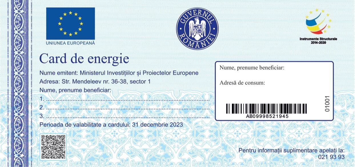 Ajutorul se va acorda pe carduri de energie, modelul acestora fiind stabilit joi, odată cu oficializarea unui ordin al Ministerului Investițiilor și Proiectelor Europene (MIPE).