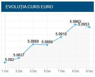 Joi, 9 octombrie,  cursul valutar este 5,0953 lei pentru un euro. Așadar, o ușoară scădere față de ziua de miercuri, însă întrebarea rămâne: care au fost cauzele creșterii bruște de la începutul lunii și ce perspective sunt din acest punct de vedere.