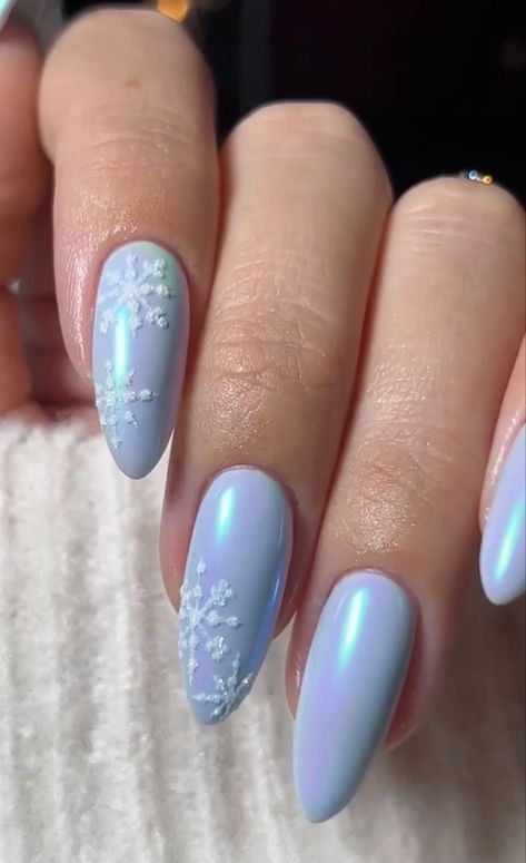 Când cauți idei pentru manichiuri de sărbători, unghiile albastre de Crăciun se remarcă prin numeroase combinații elegante și creative. Un stil foarte apreciat este cel decorat cu fulgi de zăpadă albi sau argintii, care contrastează frumos cu nuanțele de albastru închis sau pastel.