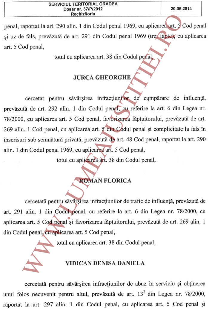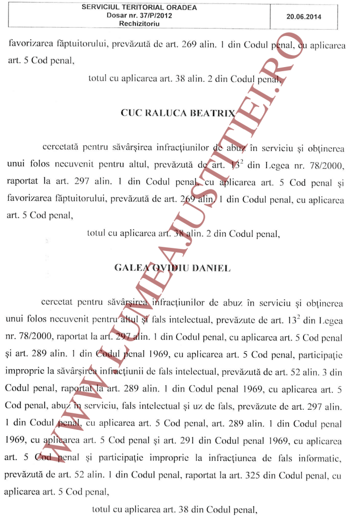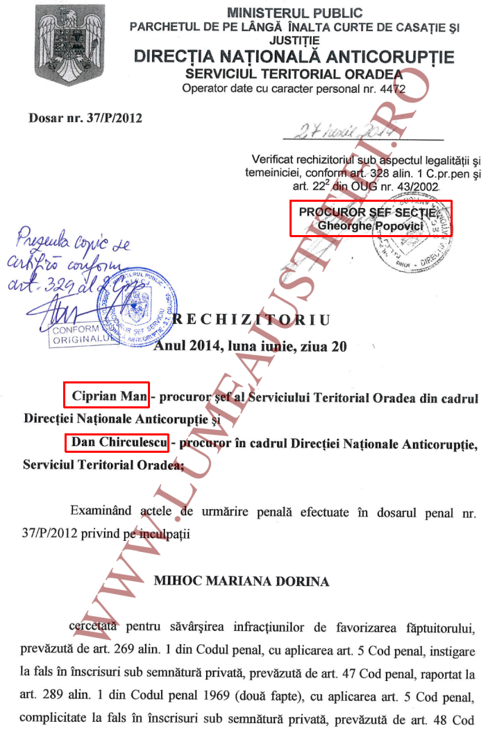 Dosarul penal a fost instrumentat de procurorii Ciprian Man (șef al DNA Oradea la acea vreme) și Dan Chirculescu, rechizitoriul (nr. 37/P/2012) fiind confirmat de Gheorghe Popovici, pe atunci șef al Secției I din DNA Central.