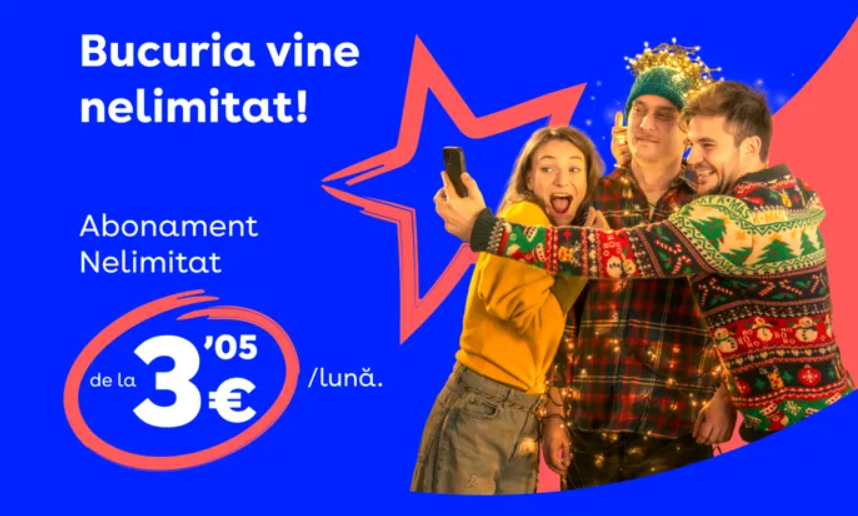Operatorul precizează că internetul nelimitat este disponibil și pentru pachetele mai accesibile, precum Optim 2 și Optim 3, cu prețuri începând de la 2,03 euro/lună.