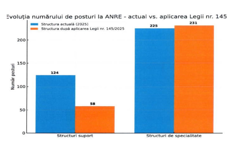 „Având în vedere faptul că, la nivelul ANRE, au fost emise în anul 2024 actele administrative prin care s-a realizat delimitarea funcțiilor și structurilor de specialitate de funcțiile și structurile funcționale (de suport), în îndeplinirea obligațiilor prevăzute de Legea nr. 145/2025 privind reducerea numărului de posturi și stabilirea unei noi organigrame, autoritatea va ține cont de actele deja emise, acte care, în esență, respectă criteriile de departajare definite de noul cadru de reglementare”, reiese din raportul ANRE.