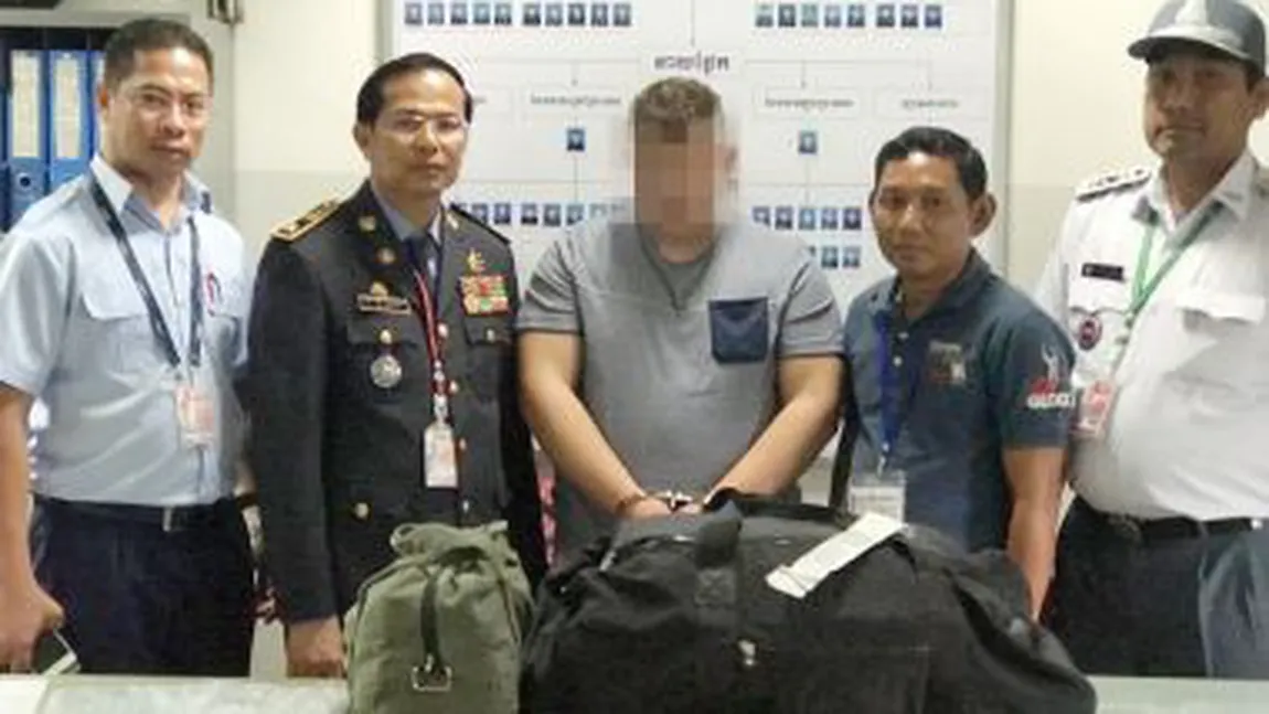 În bagajul românului Narcis-Manuel Olaru poliţiştii au găsit patru pungi de plastic cu metamfetamină, cu o greutate de 5 kilograme. Românul urma să se îmbarce într-o cursă cu destinaţia Hong Kong. La interogatoriu, bărbatul a recunoscut că face parte dintr-o bandă de traficanţi de droguri din Phnom Penh. Pe lângă Olaru, poliţiştii au mai arestat un alt român şi trei nigerieni.
