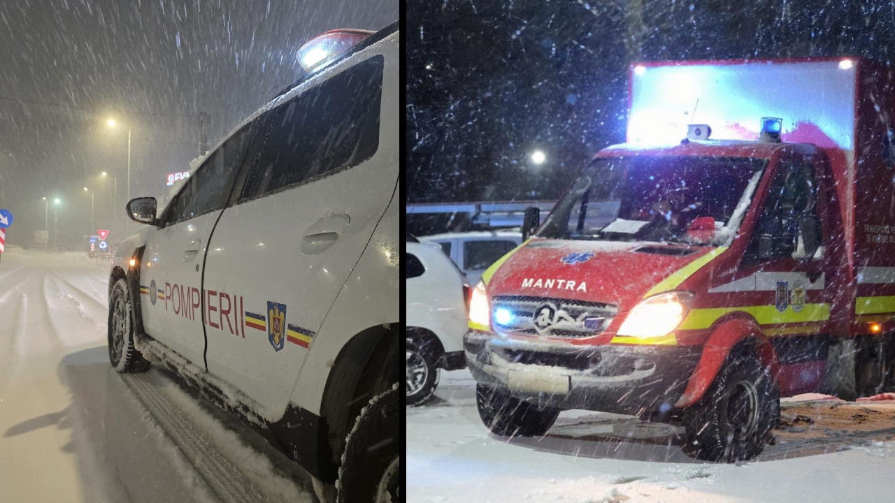 Totodată, s-a intervenit pentru deblocarea a 29 autovehicule care nu au mai putut înainta din cauza zăpezii depuse pe carosabil, pasagerii nu au necesitat îngrijiri medicale.