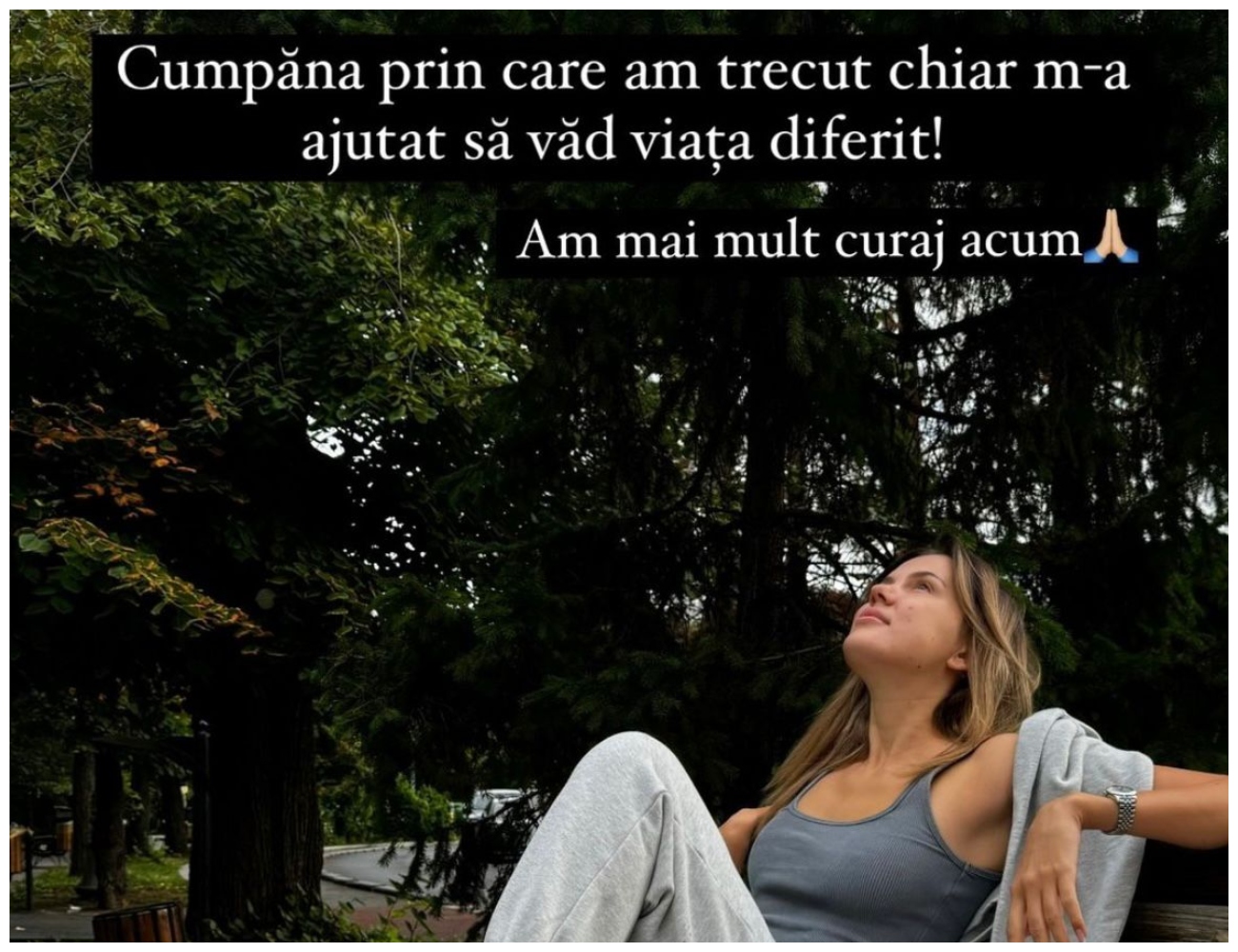 „Cumpăna prin care am trecut chiar m-a ajutat să văd viața diferit. Am mai mult curaj acum”, a mai scris ea, într-un story postat pe Instagram.