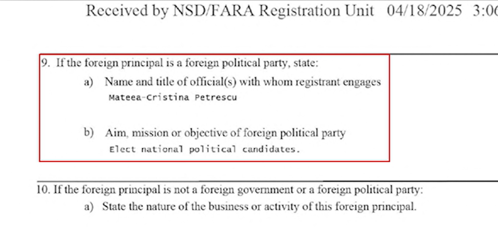 În realitate, partidul AUR a dat bani grei ca liderul său, George Simion, să ajungă la președintele american Donald Trump și la vicepreședintele JD Vance și să câștige, astfel, alegerile prezidențiale din 2025. Deoarece întâlnirile nu au avut loc, firma de lobby care a raportat oficial un contract de 1,5 milioane de dolari semnat cu partidul AUR (BGD Legal & Consulting LLC), pentru promovarea lui George Simion în SUA înainte de alegerile prezidențiale, a cerut daune unei alte firme de lobby (Obsidian Advisory LLC) care îi garantase întâlniri ale clientului lor cu Trump și alți oficiali ai SUA.