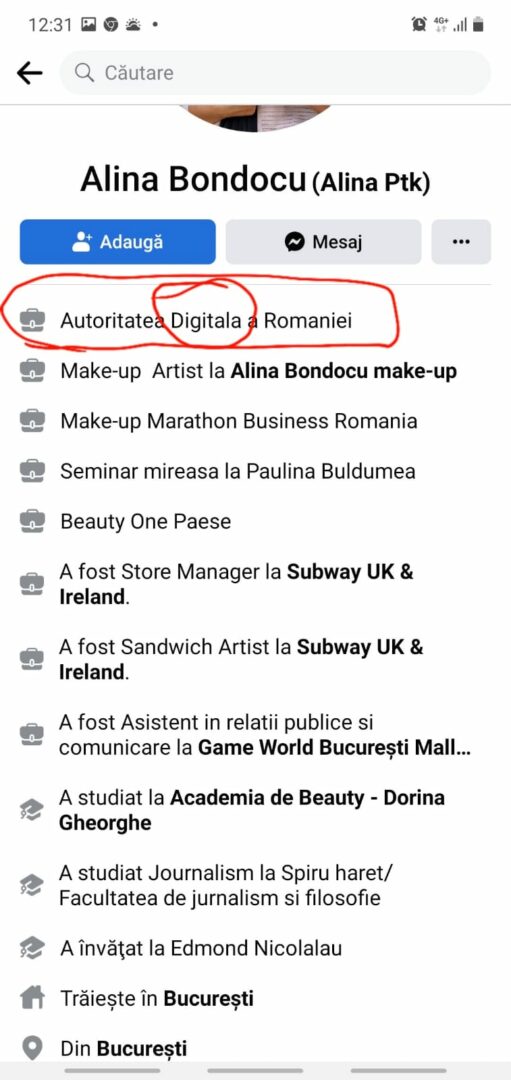 Aşa că Alina Bondocu va pune şi ea umărul la îndeplinirea obiectivului ambiţios al Guvernului, şi anume transformarea digitală a societăţii româneşti. Asta deşi, până nu demult, nu a ştiut exact cum se numeşte instituţia care a angajat-o. Astfel că, pe pagina ei de socializare, la locul de muncă era trecută Autoritatea DIGITALĂ a României.
